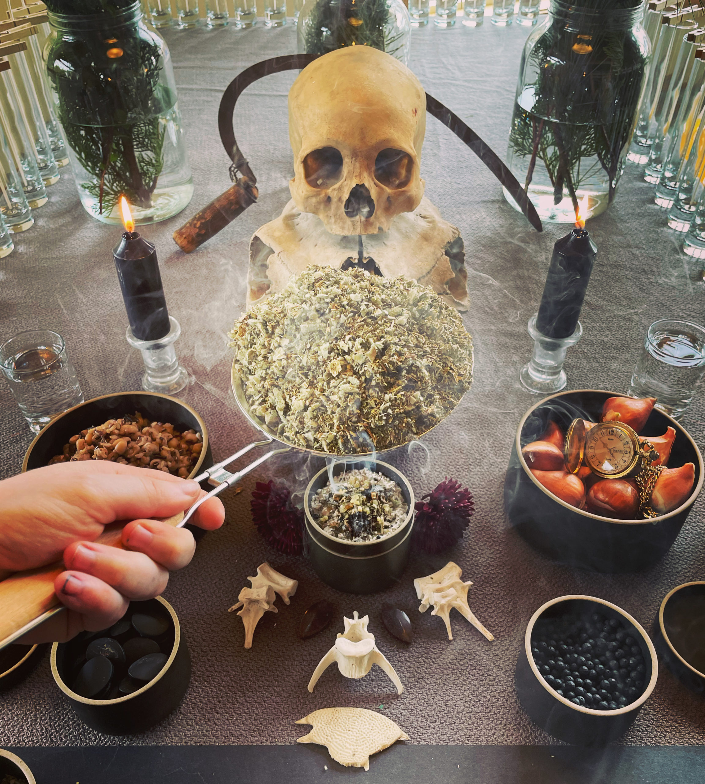 The long-standing GOAT of esoteric indie perfumery, Elizabeth Barrial of Black Phoenix Alchemy Lab and Twilight Alchemy Lab, created and charged a set of 4 talismanic perfumes for Saturn in Capricorn during Sphere + Sundry’s election, inspired by various aspects of goat anatomy —