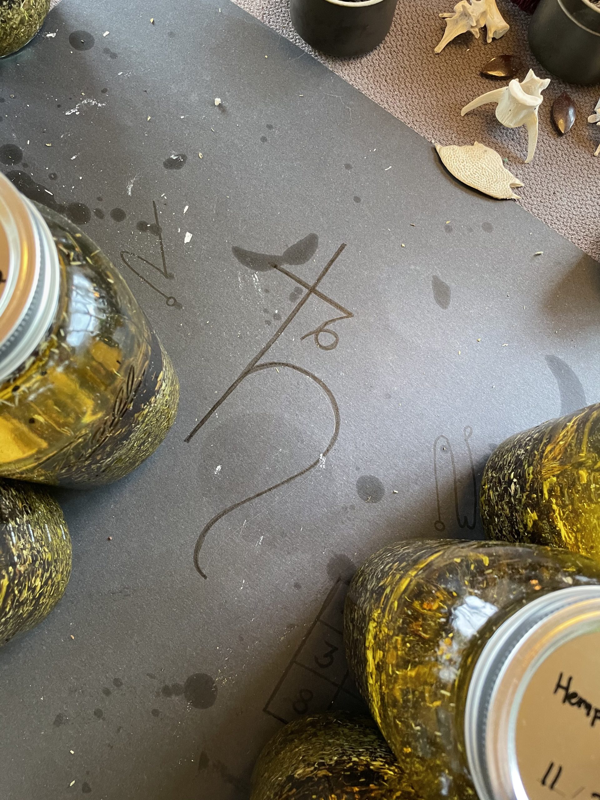 Add the mix to your lamp and fill with whatever color of petroleum based lamp fuel you fancy, in addition to whatever else your heart desires — small home etched Saturn talismans, sigils, bone, or keep it simple. Create and light for the first time in the hour of Saturn or Jupiter.
