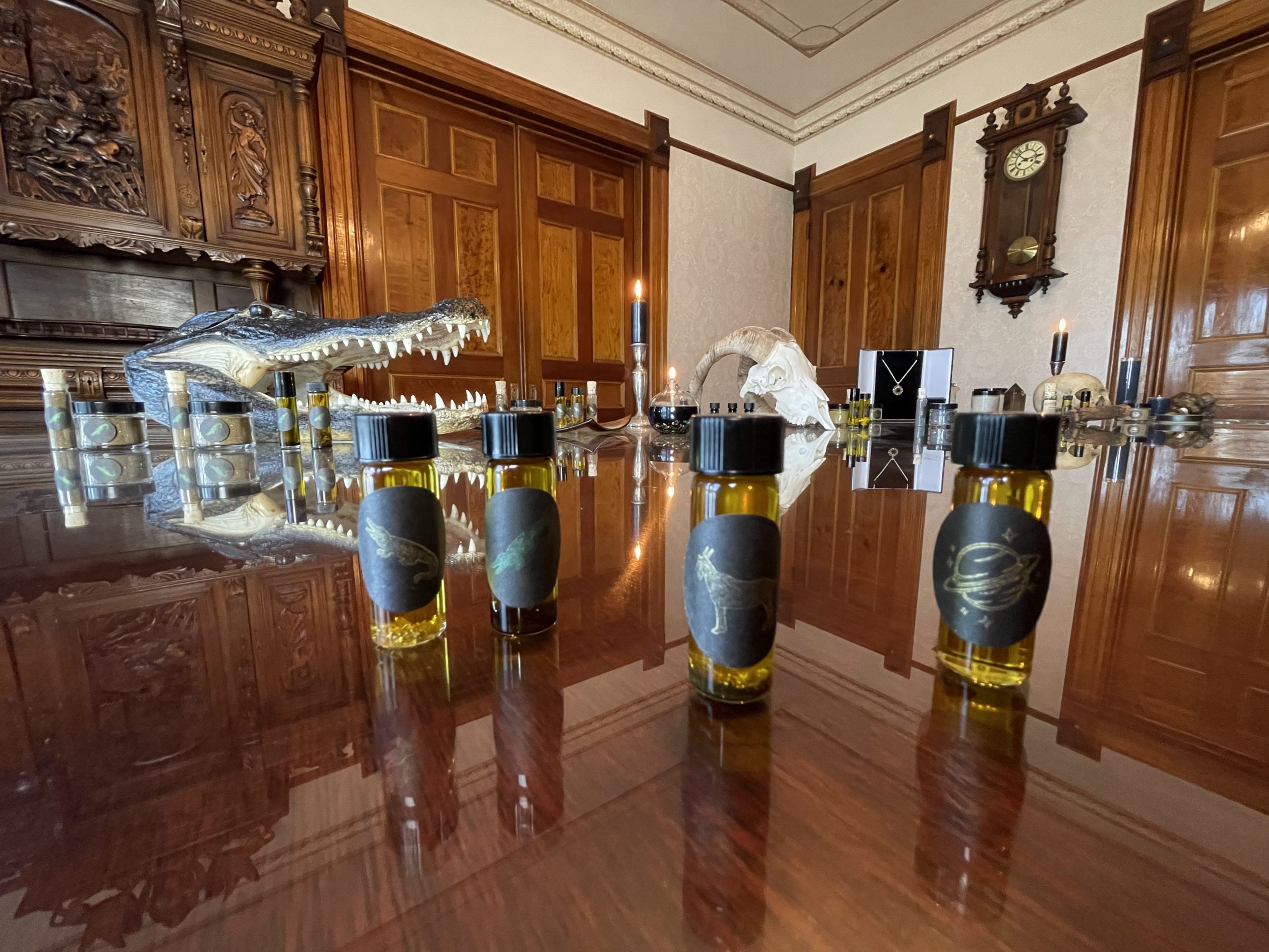 All four of the talismanic perfumes crafted and charged by the GOAT of esoteric indie perfumery, Elizabeth Barrial, for Sphere + Sundry’s Saturn in Capricorn series:
