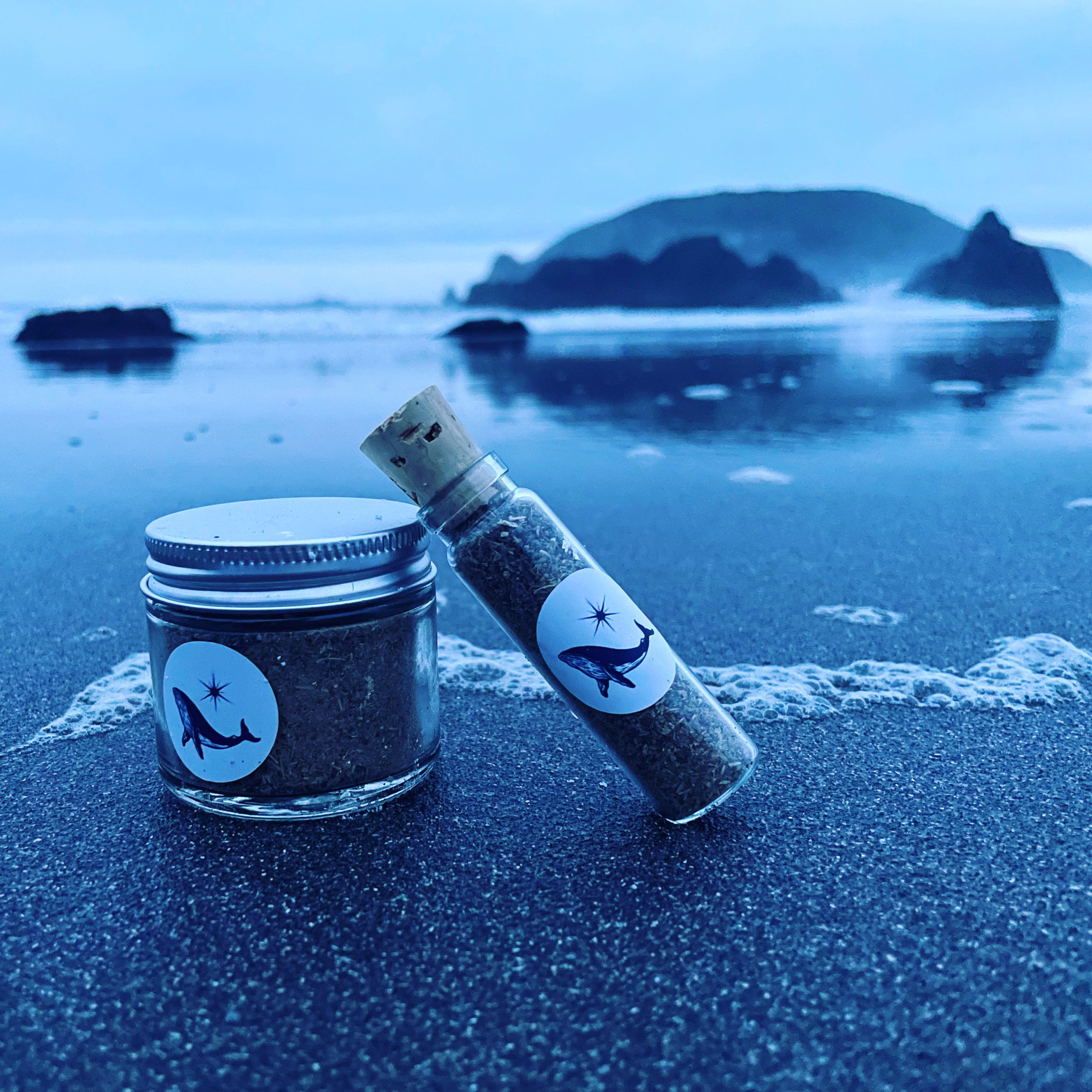 Pure, uncut herbs and resins, ritually fumigated during Sphere + Sundry’s Jupiter-Fomalhaut election. Beach sand harvested the night of, crushed seashell and aquamarine, white gold.