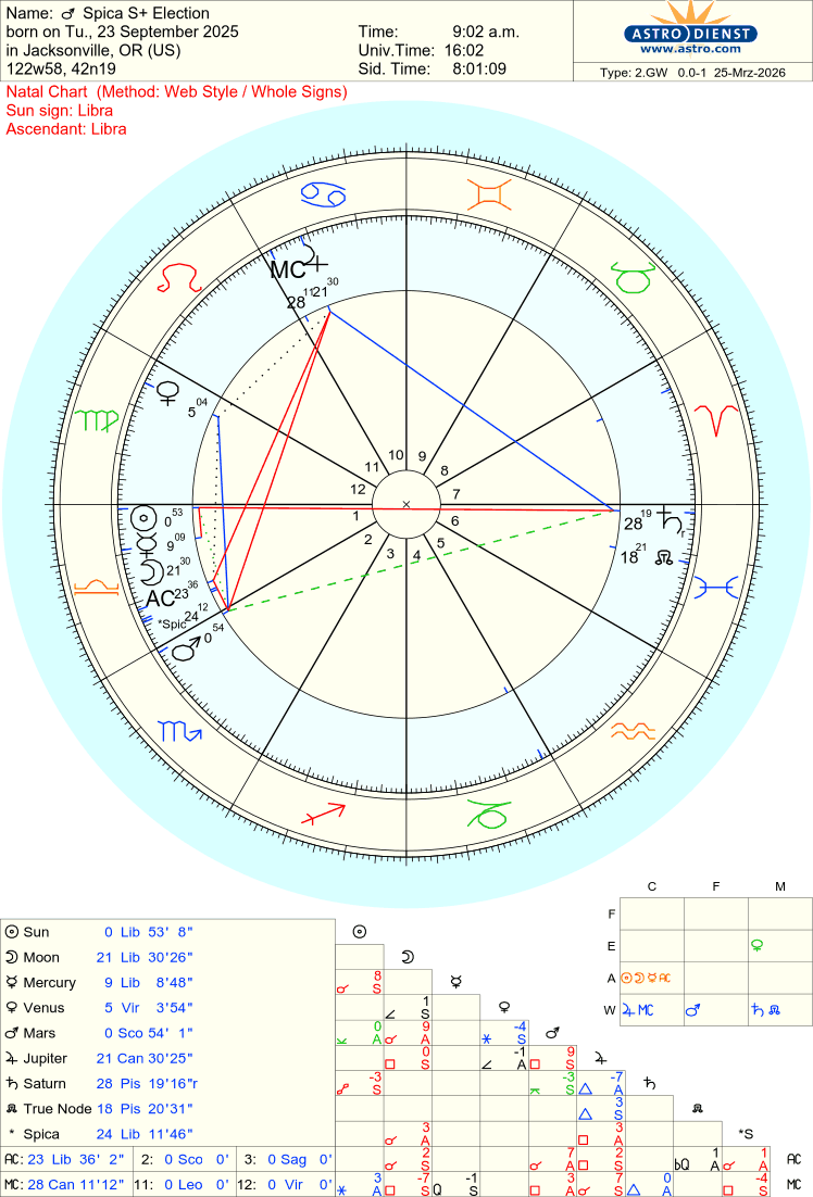 Offering further assistance to the operation is clever Mercury, already risen in the first house of the figure. Mercury, strong in both its triplicity and bound, is deeply entwined with Venus. The two are in mutual reception, spiraling together the technical and aesthetic, form and function, into a double helix of divine engineering. It is these very strands which Spica always seeks to weave together into excellence-in-creation, and thus the energy of Mercury and Venus’ mutual reception is happily directed by the precise star.