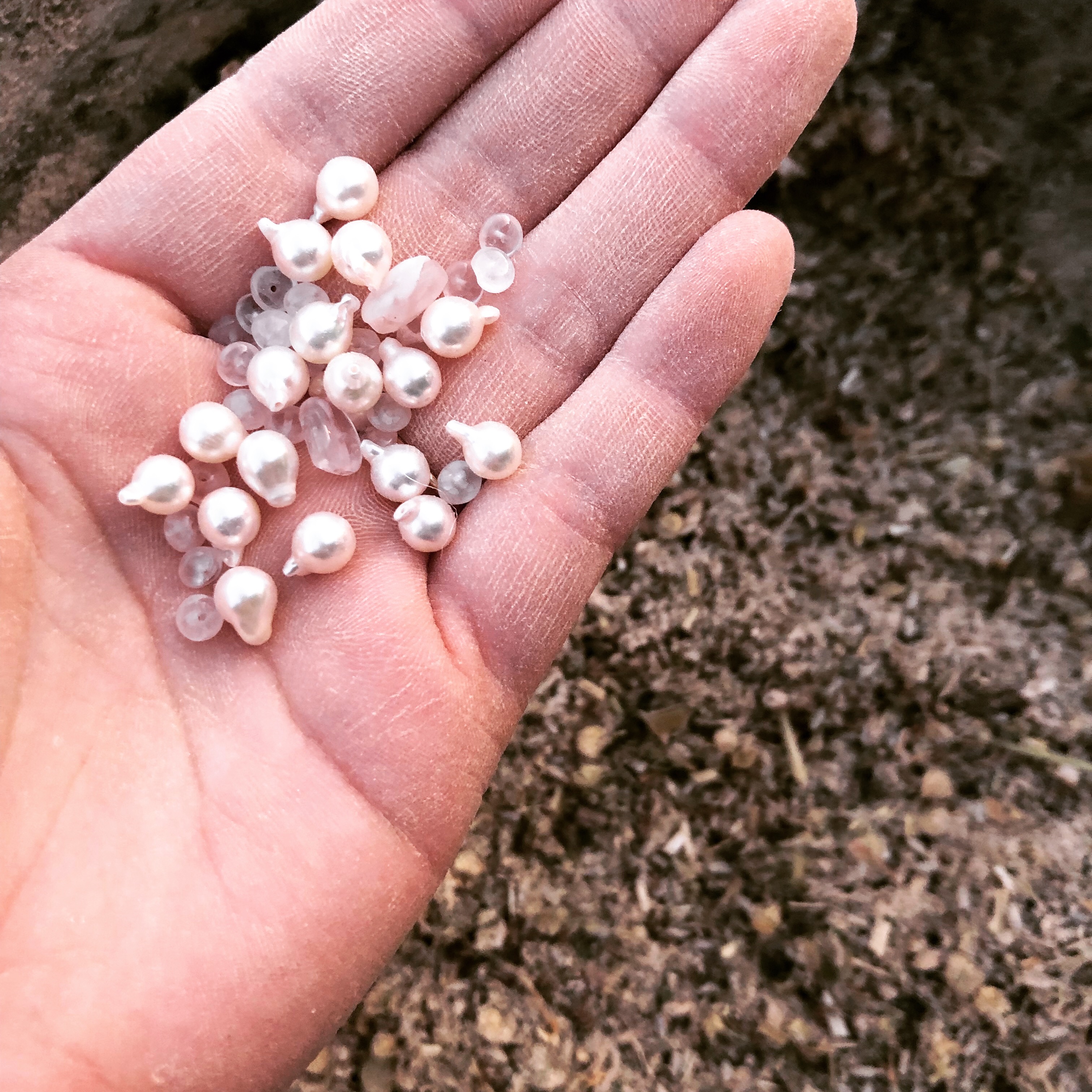 The Ancestors mother-blend, combined with calming herbs such as angelica, chamomile, arnica, and proprietary others, along with intent to soothe familial inflammations and provide a calm, easy intimacy. Rose quartz and saltwater pearl, genuine silver and copper leaf, white roses offered the night of the operation, baby’s breath. Organic cold pressed almond oil.