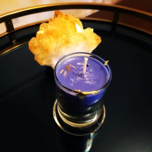 The still pot also included saffron, the world’s most expensive spice, fulgurite (a gemstone created by lightning strike), lapis lazuli, four acorns, oak bark, cinnamon, allspice, clove, orange peel, and other Jupitarian herbs. It smells of mulling spices simmering away on the stove, or freshly baked spice bread, making it the perfect accompaniment for the cold and holiday seasons.