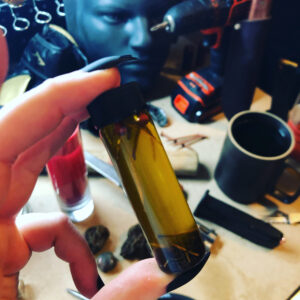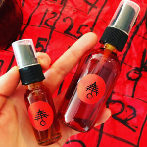 Also note: While this contains nothing inedible or poisonous, it was not created in a commercial kitchen to GMP standards, so it is not suitable or intended for consumption. Use externally to anoint yourself (nowhere sensitive) or objects. Keep this (and all our wares) out of reach of children. Do not use while pregnant or trying to get pregnant. Any internal consumption undertaken at the user’s sole risk and liability.