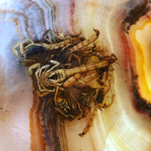 Emperor Edition, containing the dust of 10 venomous scorpions powdered in the hour of Mars and day of Saturn. A talismanic vessel for Scorpionic intelligence, this much more intense oil is for works of magical maleficia and use under the most dire of circumstances, where the mind of a cold and lethal predator needs be employed as your champion. Please use responsibly, and hopefully infrequently. Obviously do not consume it, or apply to open wounds.