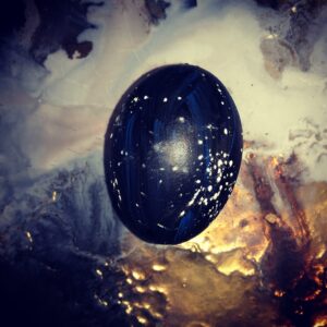 Organic, cage free, vegetarian-fed eggs were blown, honoring the spirits of the chickens who were-not, and the eggs cooked before being offered outside to the Moon, her attending spirits, and the night beasts to feed upon. The shells were then soaked, sigilized, painted, and given a starry cast with a sprinkling of saltwater pearl dust. These were ritually suffumigated and consecrated along with the rest of the Moon-Neptune series.