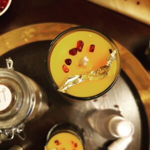 Cognac is a distillation of Champagne, a beverage long associated with Kingship, wealth, and opulence, whose bubbles impart a quality of literal effervescence and therefore elevation. This was used as the tincture base from a high-end, well regarded manufacturer, combined with mugwort, mastic, wormwood, and honey as the Moon conjoined Regulus on the rising, in the hour of Jupiter.