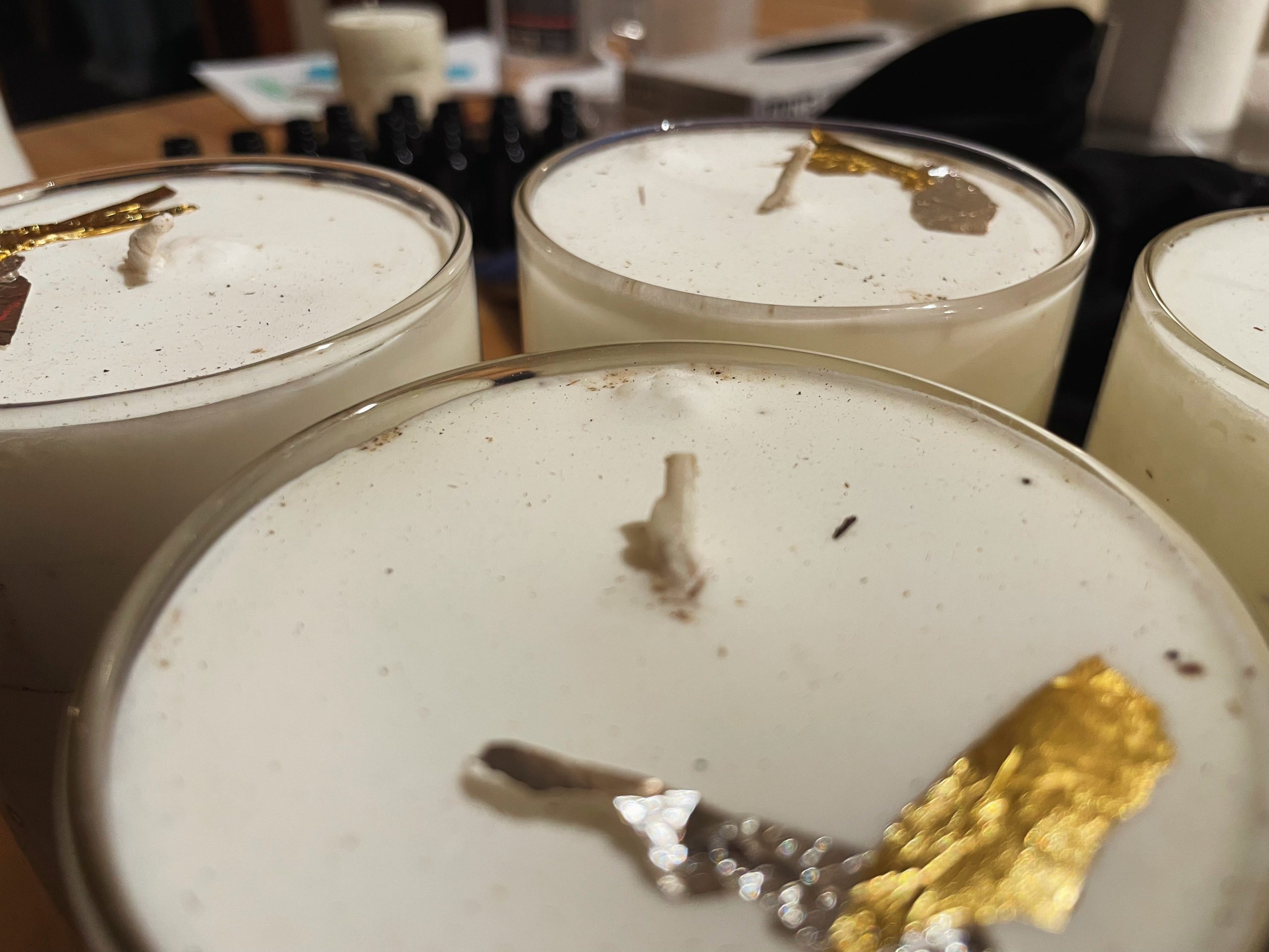 There are many candle varieties for Thema Mundi, all in glass jars, made of a soy-coconut blend.