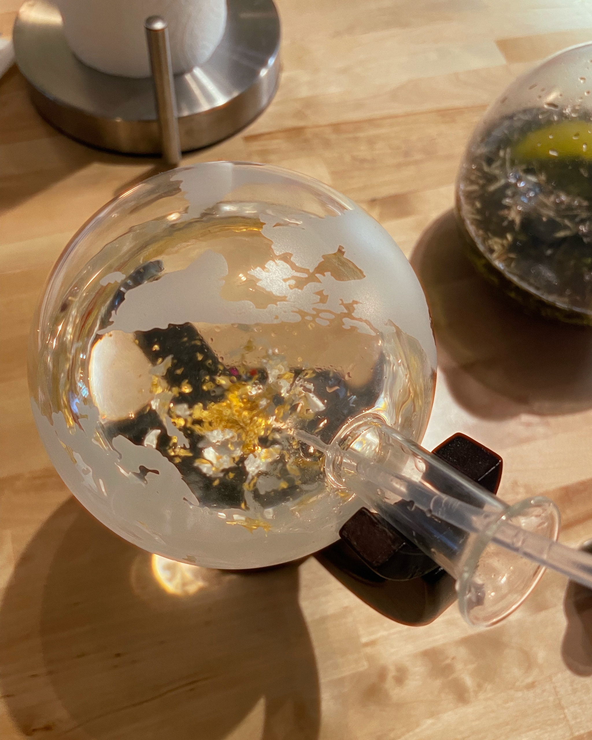 Edible 24k gold and drops of seawater from the main Mother Globe in a tincture of vodka.