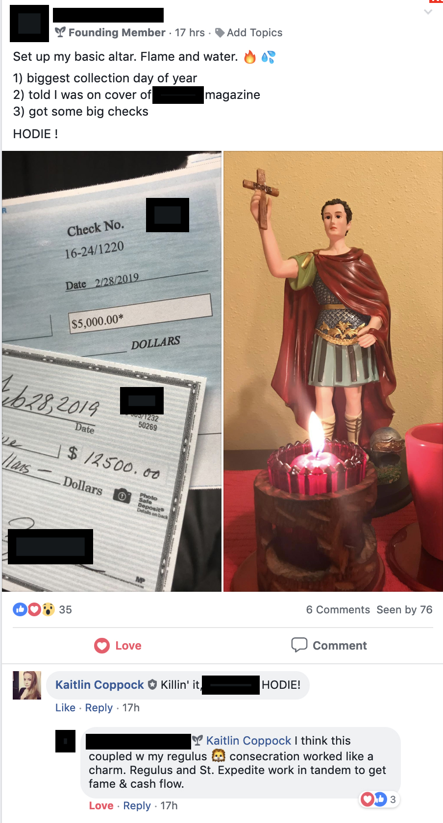 Saint Expedite has come through yet again! I received an entirely unexpected check for $91 as part of a class act settlement I was unaware of. And a yearlong dispute with a health insurance company was settled — and I received the payment from them. Thank you, great Saint Expedite! My gratitude to you. You are truly powerful. Praise be!